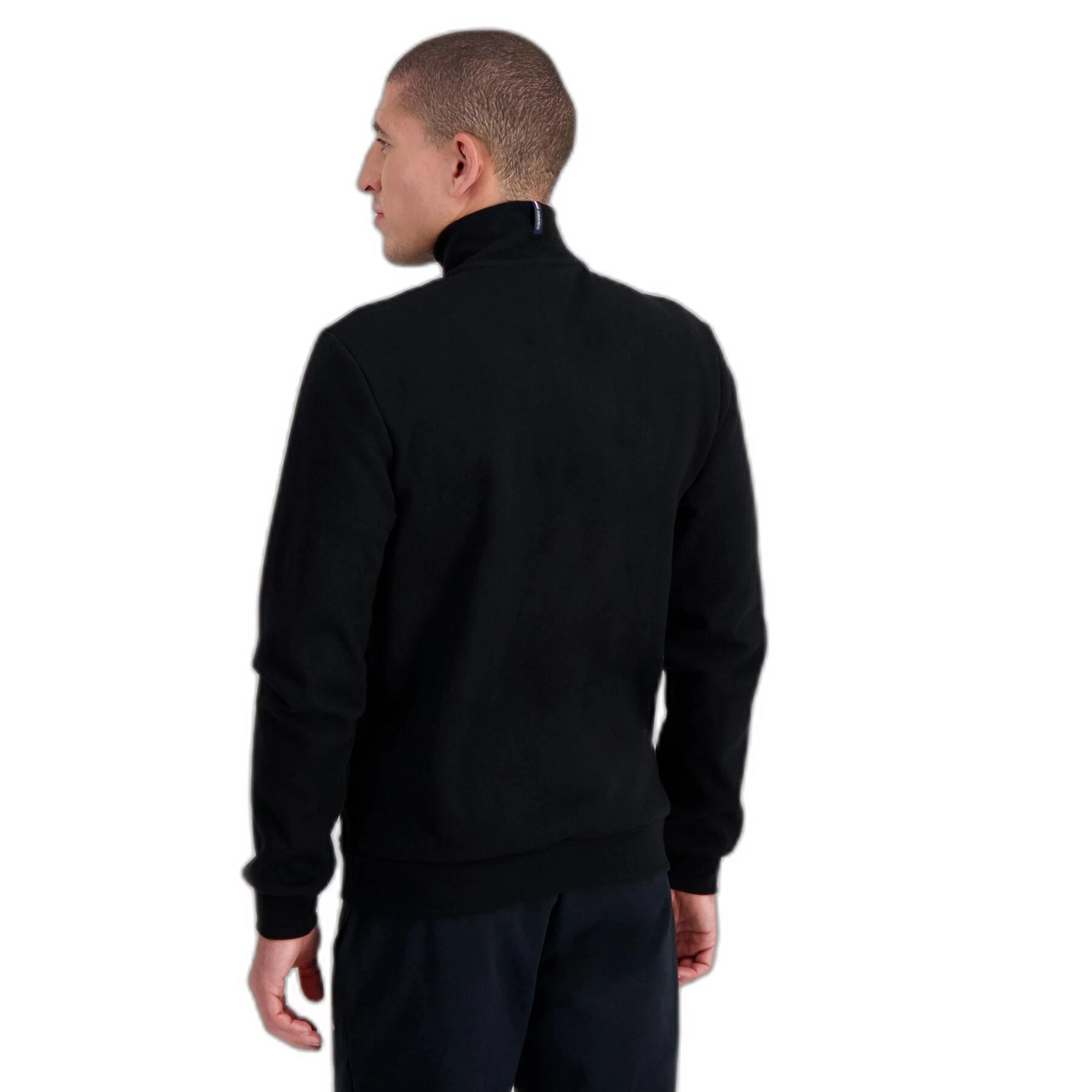 – Ouverture milieu devant zippée, 2 poches passepoilées sur le devant, étiquette Bleu/Blanc/Rouge avec écriture “Le Coq Sportif” appliqué sur le col milieu dos